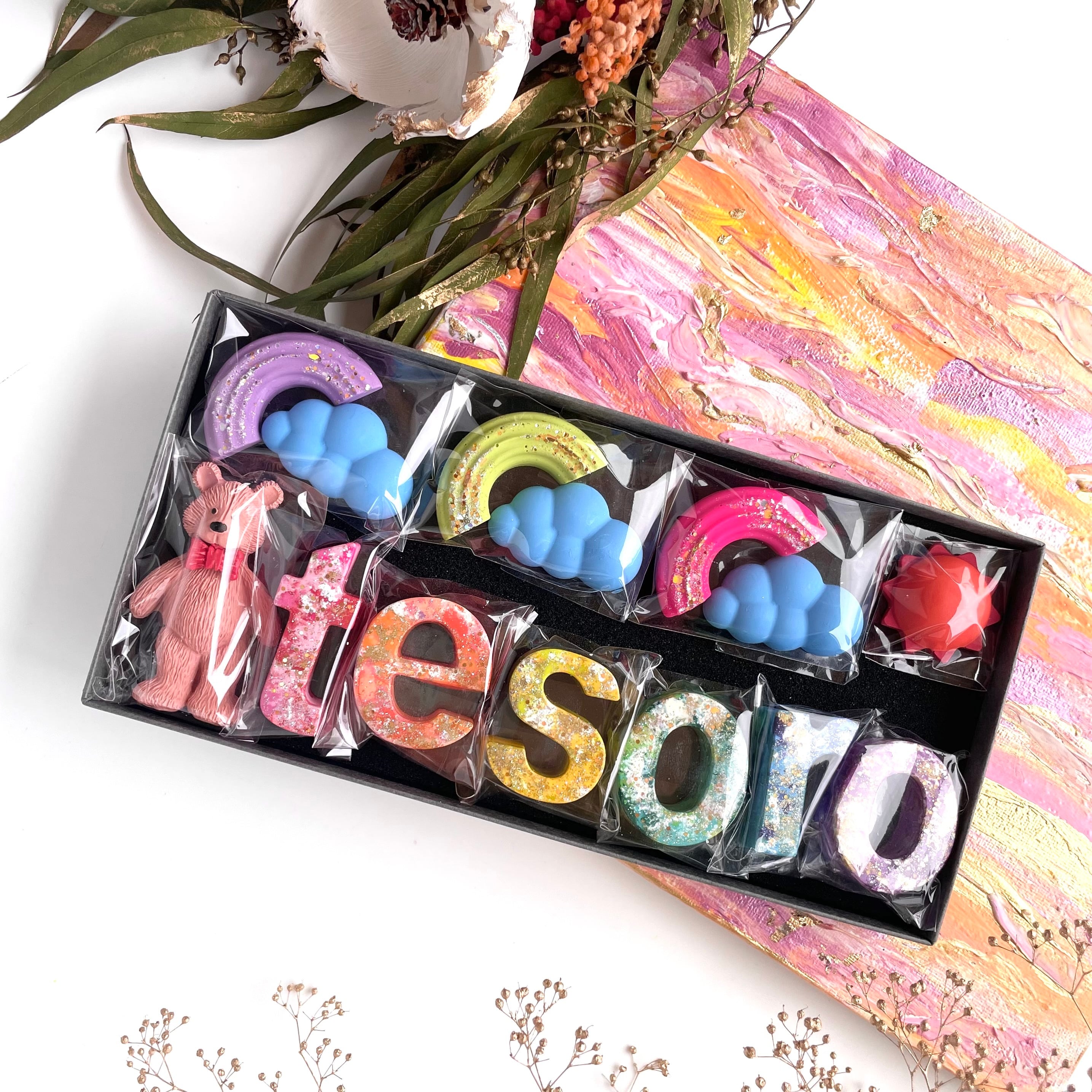 • 名前や言葉をアルファベットで入れられるギフトセット